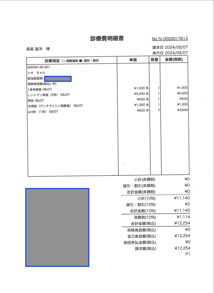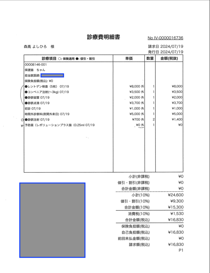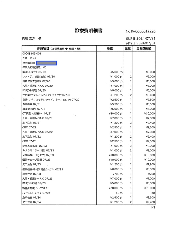 ページ上に掲載している診断書や診療明細書などの資料は全て動物病院から掲載の許諾を得ております。