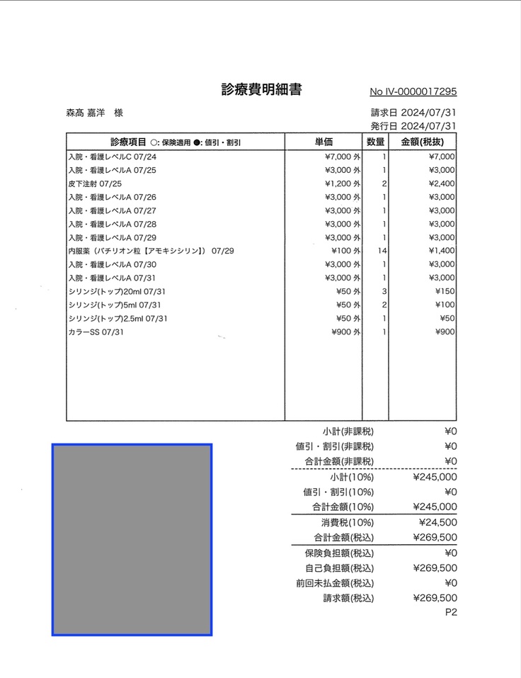 以下、診断書と現在までにかかっている費用の明細、CT画像等添付させていただきます。