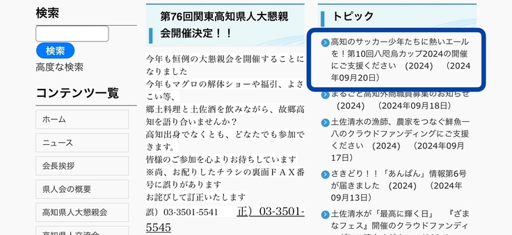 関東に在住される県人の方々の集まり「関東高知県人会」のHPに当プロジェクトを掲載していただきました。
