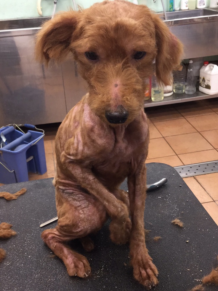 全身もつれだったので短くしました。皮膚の状態が悪かったので病院へ連れて行きました。