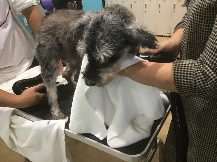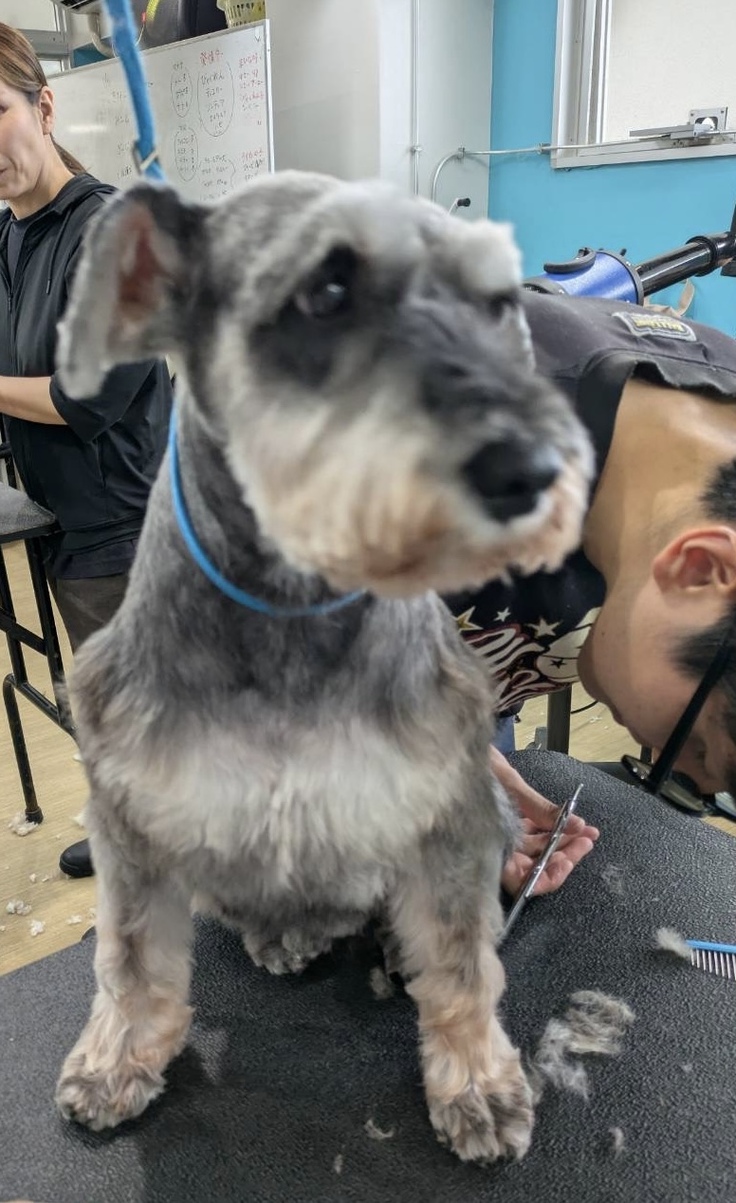 アニマルレスキューokidoggieさんがレスキューしたワンコ、シュナウザーのギンジ君を綺麗にしました。