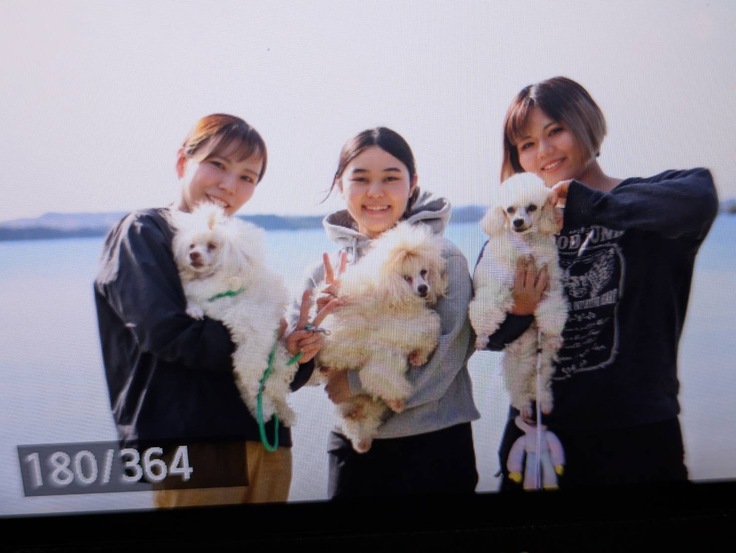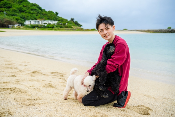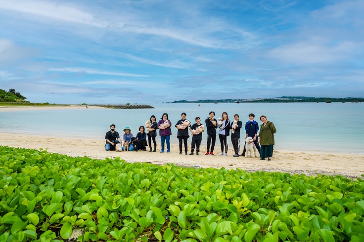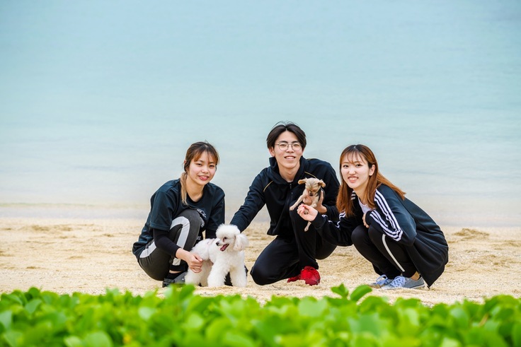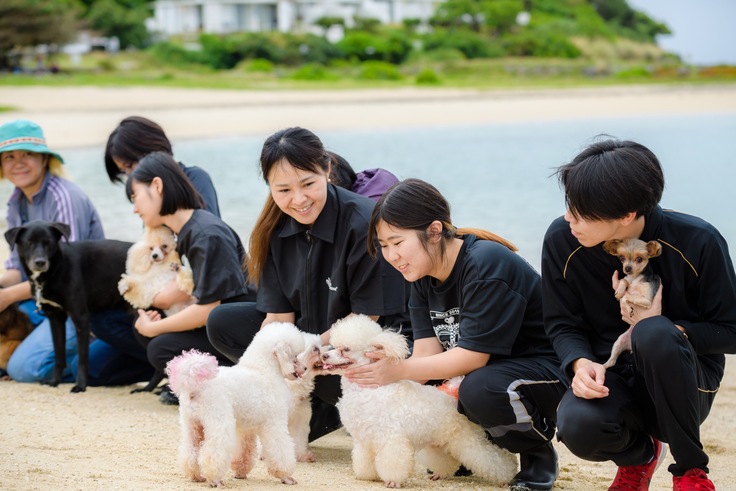 スクールのふれあい施設の近くに浜比嘉島があり、そこで犬たちと生徒たちで写真撮影をよくしています。