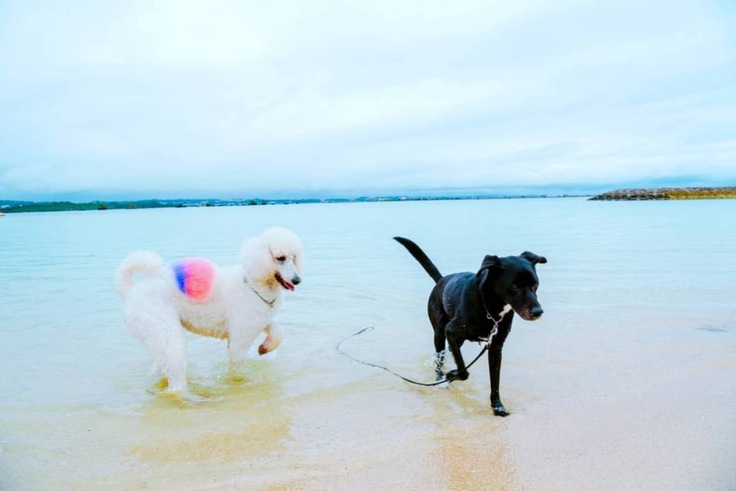 保護犬たちも一緒に撮影。とてもキレイな海🏖があり犬たちも一緒に泳ぐ事もできます。