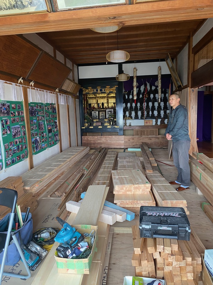 位牌堂の棚の組み立てが始まります/畳が入りました!