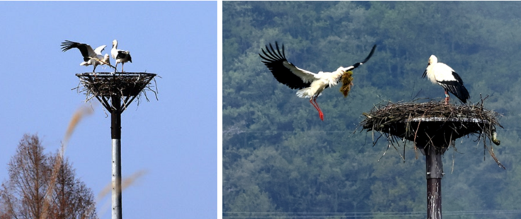 コウノトリは樹上や鉄塔、電柱の上に巣作りをする習性があります。