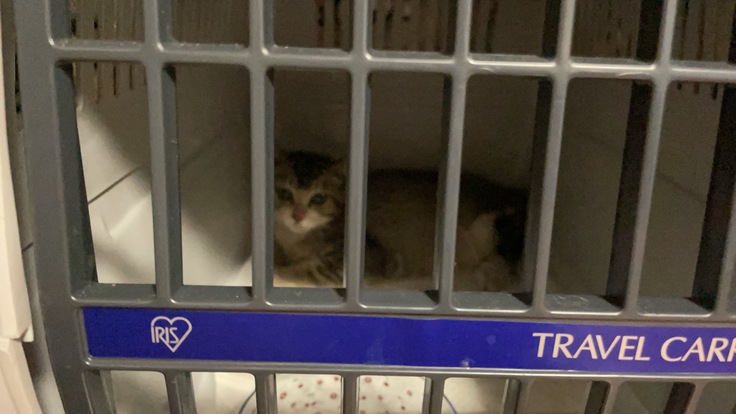 ネコさんが落ち着くまで待って捕獲器から仮のキャリーへ移動してもらいました!!