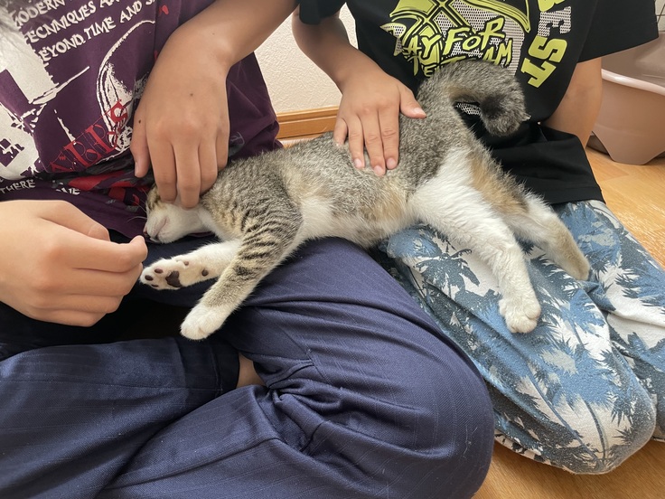 私が2回も噛まれてるので怖がっているお兄ちゃん達はおそるおそる触るとゴロゴローっと言いながら沢山ナデナデできました!!