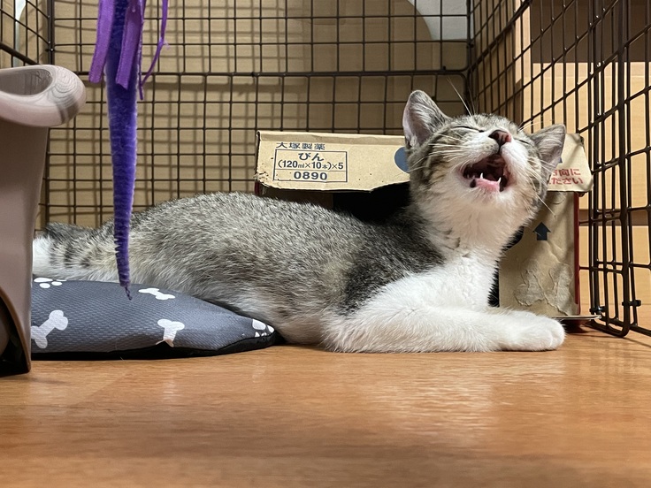 ↓ご飯の用意をしだすと、はやくー!食べたいよー!としてるとらちぃです!