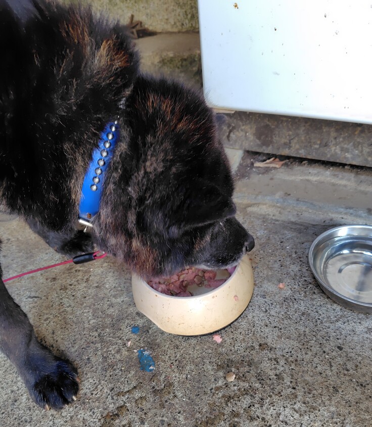 この度のクロちゃんの食道腫瘍は幸い良性であったため、腫瘍を取り除けば、また食道が広がり食べ物もスムーズに通り、吐き気もなくなるとの事でした。2024年10月2日に皆様のおかげで先生に腫瘍を取り除く手術をしていただきました。食道の外側の筋肉にできた平滑筋腫を取り除く手術は少し難しい手術になりましたが、なるべくクロちゃんに負担がかからないような方法で、手術後も治りやすいようにと細かなところまで考えていただき手術してくださいました。クロちゃんも麻酔や手術後の痛みにも耐えてくれて本当に頑張ってくれました。しばらくは食道を使わずに休めるため胃瘻チューブを設置しての食事になりました。どれだけ治りが早いかわからないので、2025年4月2日をプロジェクト実施終了期日とさせていただきましたが、おかげさまで手術後の回復も非常に早く、クロちゃんの生命力でしょうか、驚くほど順調に治療跡も治っていき、手術後の胃瘻チューブでの食事も1ヶ月半ほどで終わり、2024年11月21日に胃瘻を外す手術をしていただきました。食事も口から食べられるようになり、徐々に量を増やしていき様子を見ながら問題なければもう病院での治療や診察も終わりとの事でした。順調に回復しご飯の量も増やしながら様子をみていましたが、クロちゃんの回復が早く、本当にたくさんご飯を食べてくれるようになり体力も戻り体重も少しずつ増えていました。