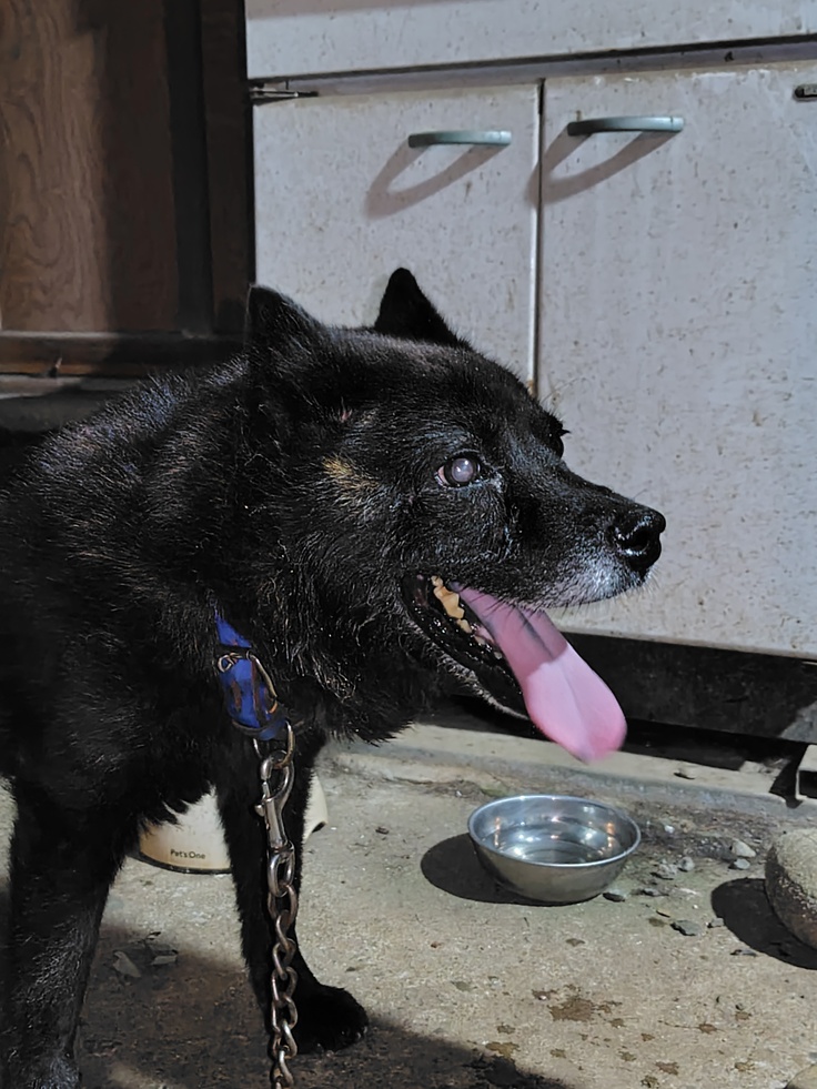 今日も朝から暑かったです。クロは朝から息遣いが荒く頑張ってました。ご飯はぼちぼち食べてくれました。