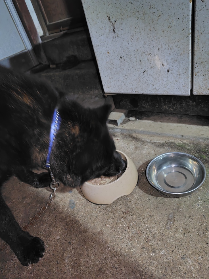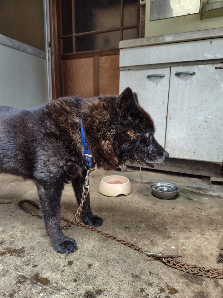 今日も朝から暑さでクロちゃんは食欲がなく、よだれも出てしんどそうでした。昼くらいになんとか朝ご飯が終わりました。
