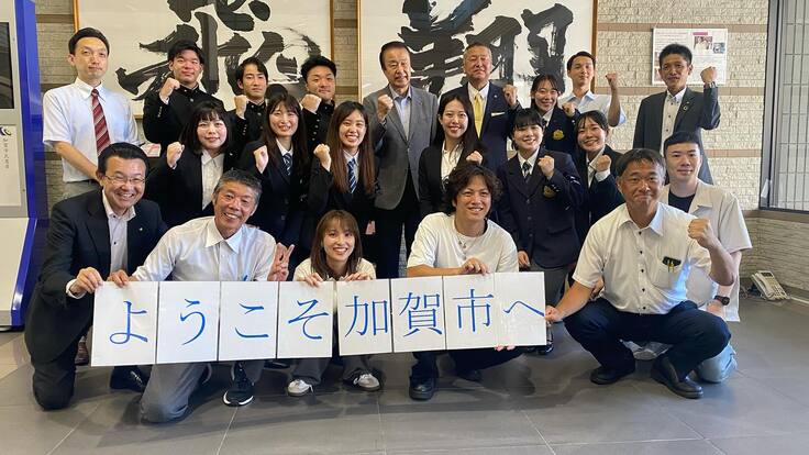 この「加州大聖寺藩参勤交代うぉーく2019」の取り組みをご縁に、大東文化大學全學應援團(東京都)と加賀聖城高校生徒会との交流が生まれ、本年3月の北陸新幹線加賀温泉駅開業日には、大東文化大學全學應援團の皆様に、開業イベントだけでなく、令和6年能登半島地震で加賀市に二次避難されている方々の宿舎で、エールを送っていただきました。
