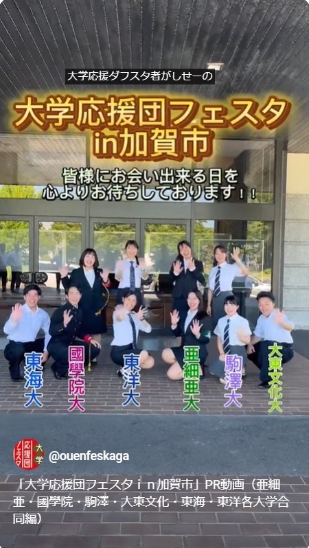 参加6大学応援団と加賀市実行委員会の「大学応援団フェスタin加賀市」PR動画です