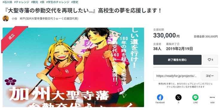『大聖寺藩の参勤交代を再現したい…』 クラウドファンディング READYFOR
