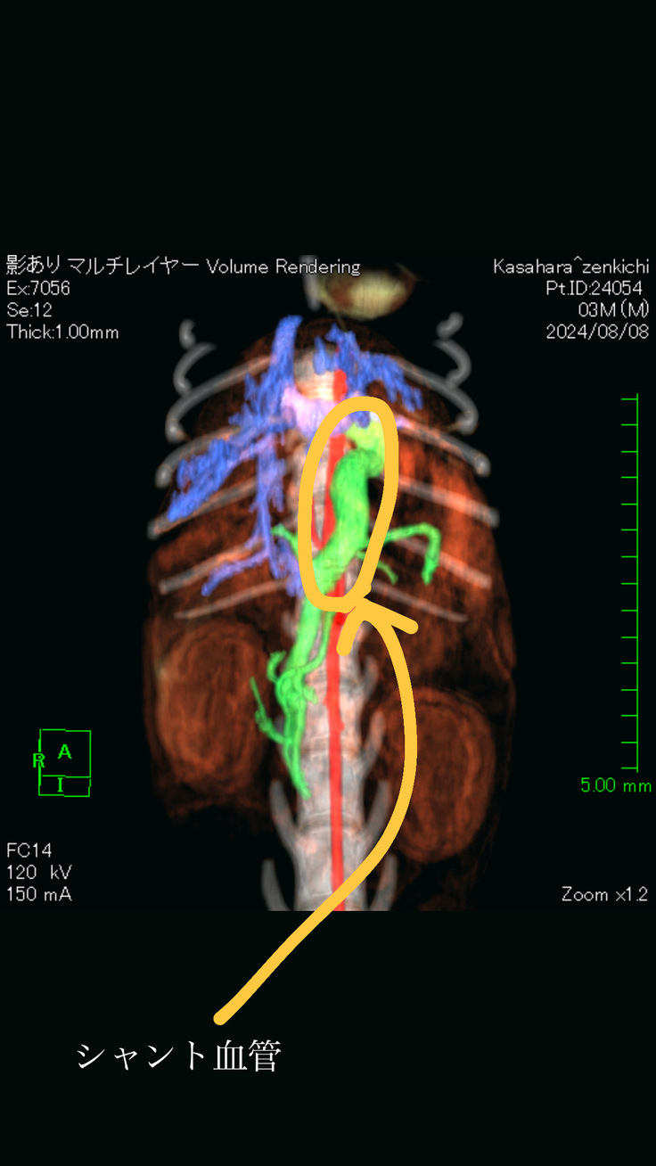 またシャント血管も太いため(上記CT画像参照)、十獣医師によると、結紮手術はできないが、リングをはめて徐々に血管をしめていく手術(アメロイドストリクター設置)になるとのことでした。