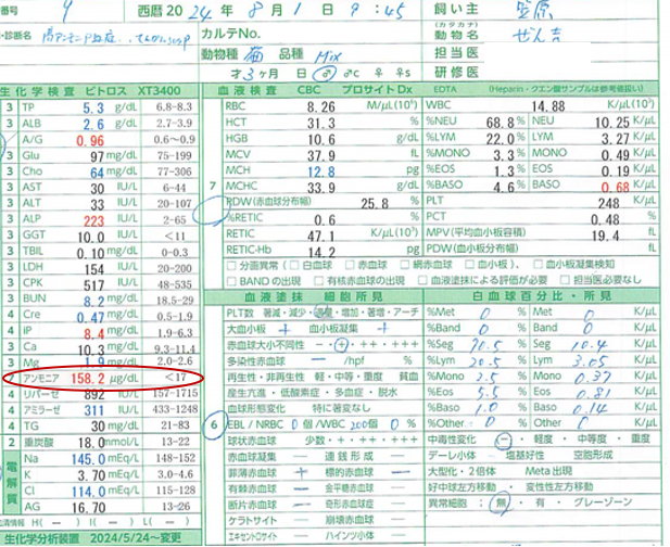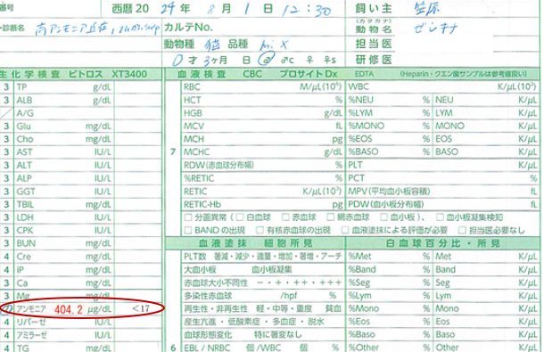A病院にて門脈シャントの疑いがかかった日(7/27)から