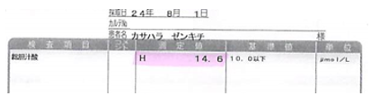 食前:14.6μmol/L 食後:159.6μmol/L