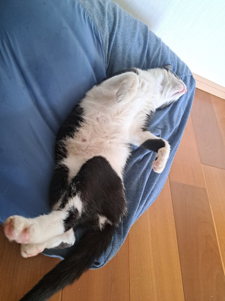今日のよもぎは1日寝ていました‼️お気に入りのクッションを取って爆睡です‼️