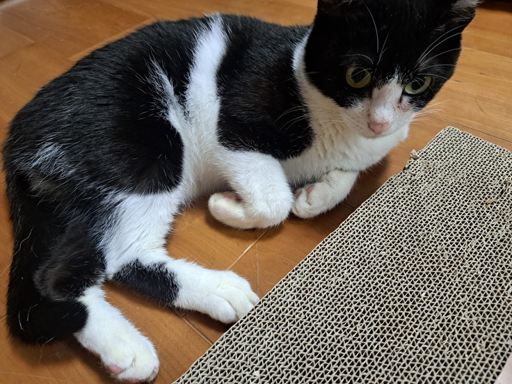 今のよもぎは目がうっすら生活に支障がないくらいに見える程度、耳はまったく聞こえてない状況です😊がそれ以外は通常に生活できています‼️身体は他のねこちゃんより小さめな3キロ弱です。これも病気の影響のようです。