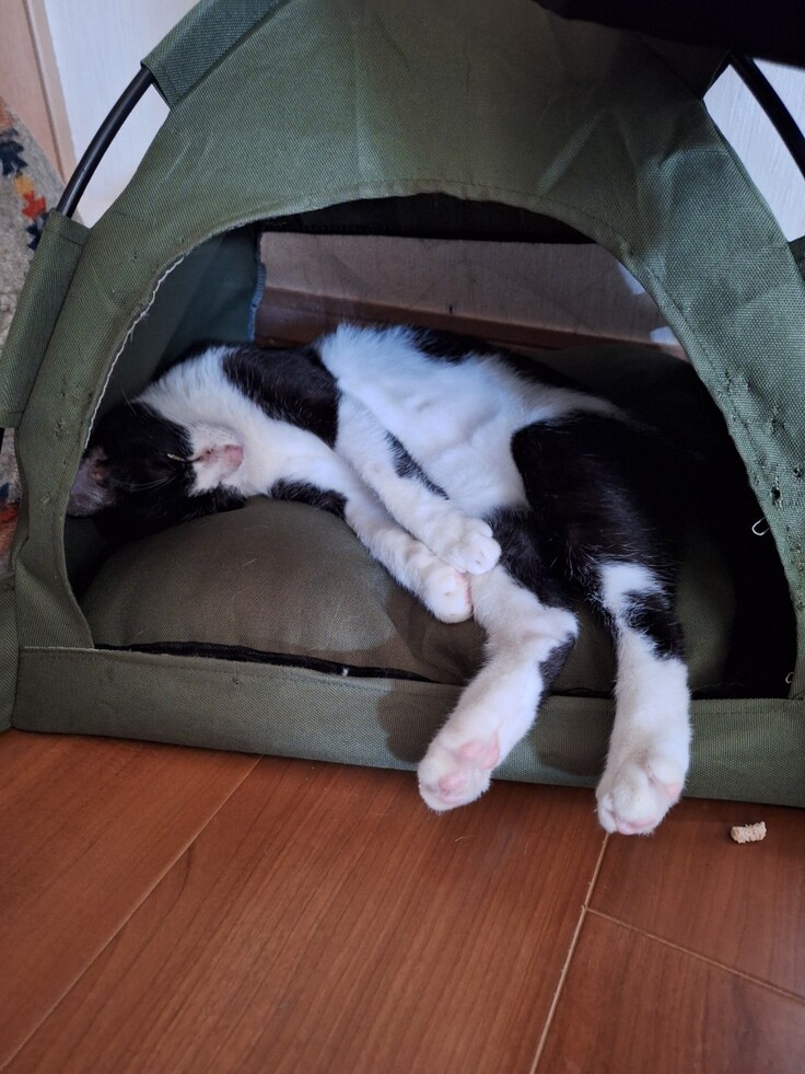 今日のよもぎは幾度となく投稿した寝姿です。ねこ=寝子 とよく聞きますがよもぎもよく寝ます‼️そして耳が聞こえないので寝てる無防備な姿を撮ることが出来ます‼️