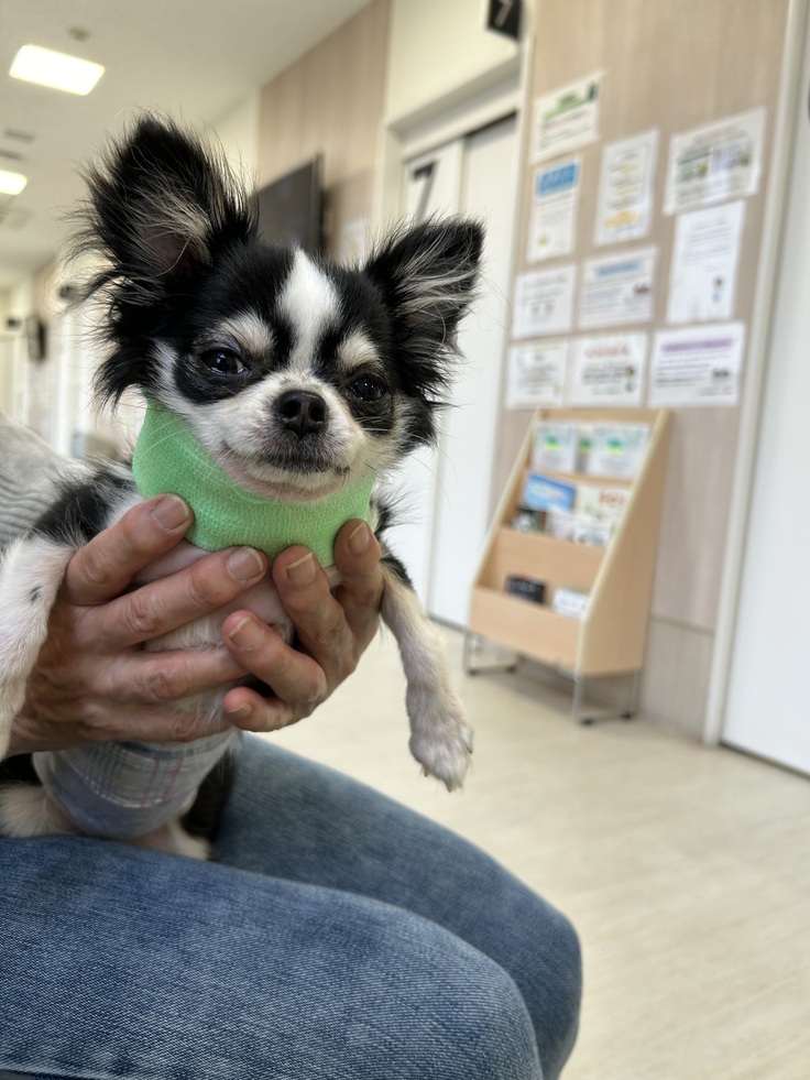あとは首を固定するためのネックカラーを付け替えてもらいました🥴毎回違う色で、本日はグリーン🫛