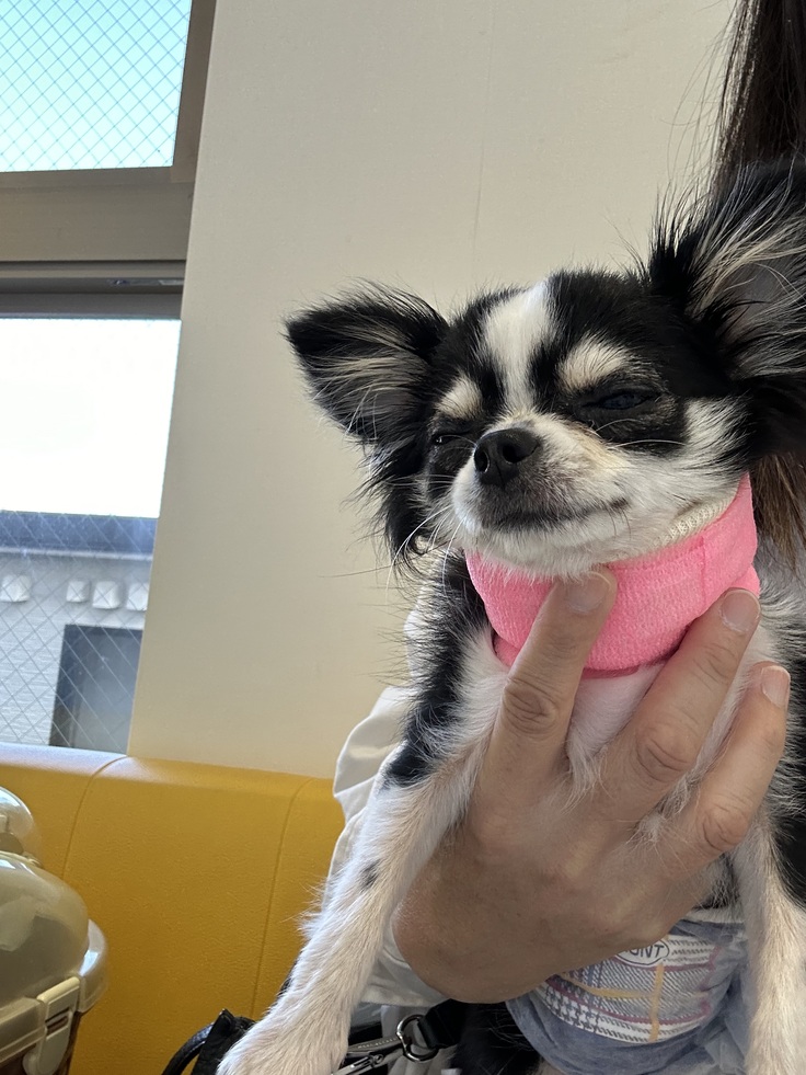 診察の結果、経過は良好とのことです✨よかった!あとは首を固定しているネックカラーを変えてもらいました💚🩷