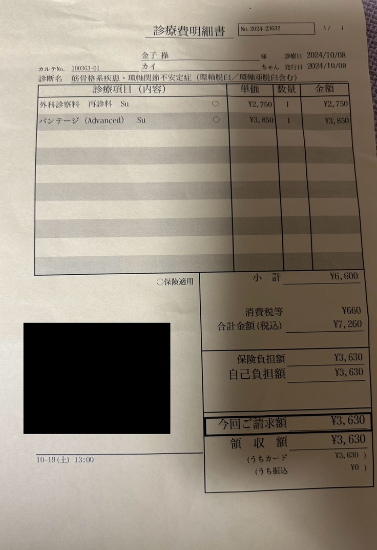 3,630円(10/8診察、首固定バンド)