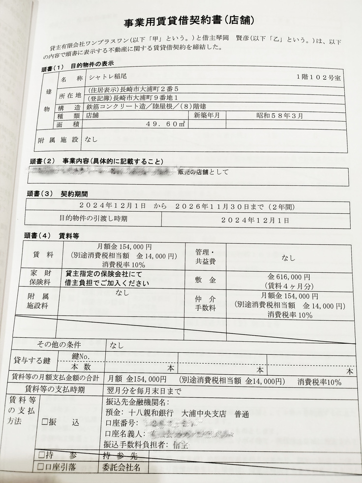 開業にむけて賃貸契約を締結(自己資金にて)しました。
