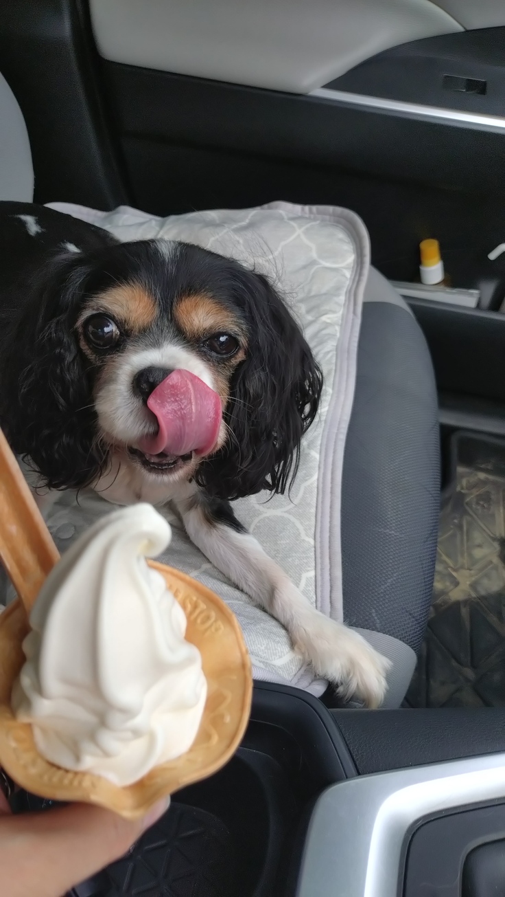 なので、帰りには頑張ったご褒美に、ハニーの大好きなソフトクリームをあげることにした。