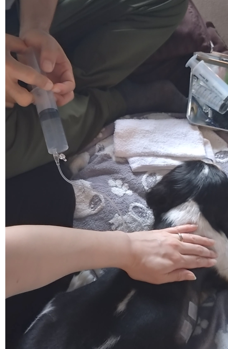 点滴も毎日してあげると楽なようで、チックン💉痛くて可哀想だけど、、、点滴も頑張ってます😌