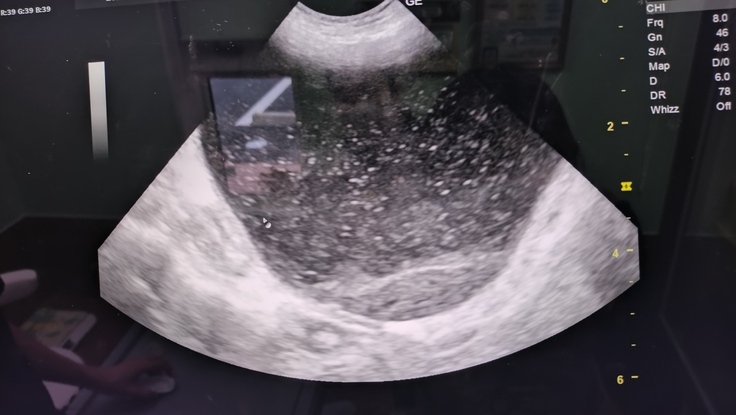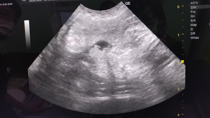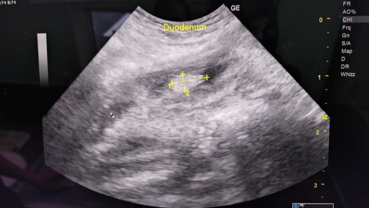 エコーの白みはそこまで強くはないが、また腹膜炎が起きている可能性が高い。