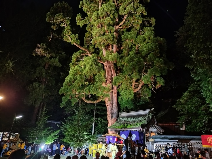 遠敷祭りと合わせて、若狭姫神社のご神木「千年杉」のライトアップが行われました。