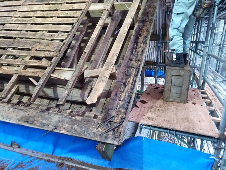 今後は、専門家の方の指導を受けながら、文化財としてできる限り現状を保存しながら屋根の修復工事を進めていく予定です。