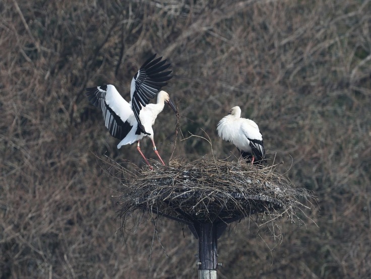 今年も、本市国富地区では、2か所の人工巣塔において営巣が確認されています。