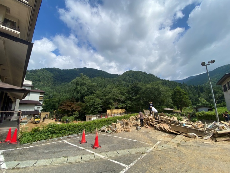 7月26日に山形県で記録的な大雨で、色々な地区で土砂崩れや床上浸水など、多くの被害をうけました。当館でもその災害を受けて翌日から、近日中のご予約のお客様へキャンセルのお願いをする日々が続きました。ご予約頂いたお客様には大変ご迷惑をお掛けした事を改めてお詫びいたします。本当に申し訳ございませんでした。