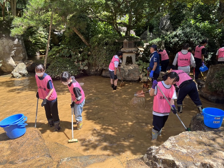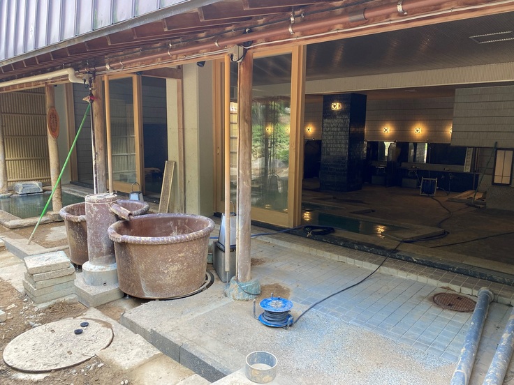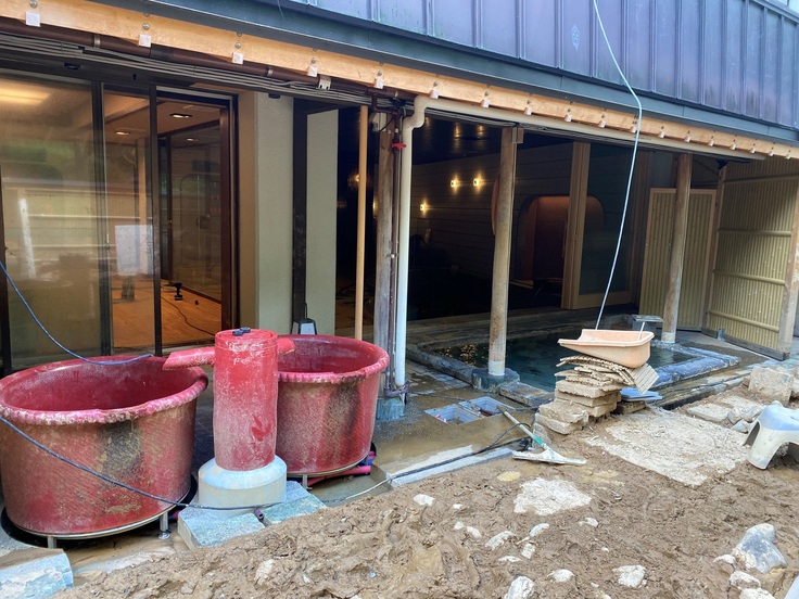 そしてリニューアルしたばかりの大浴場・中庭庭園への余りにも多い土砂の撤去作業にも途方にくれていました。ですが一日でも早く復旧して、ご予約頂いたお客様にきて頂ける様に社員一同力を合わせて復旧作業に努めました。その中で町のボランティアの方々、県内の高校生(北村山高校)生徒の皆様よりご協力いただき土砂の撤去作業をいたしました。ご協力いただきました皆様に本当に感謝申し上げます。ありがとうございました。