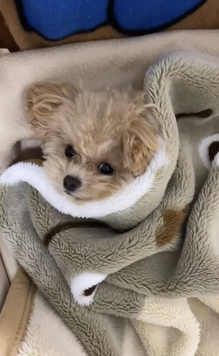 毛布が大好きなそら君。風邪ひかない様にしっかりお腹隠して寝てね...。