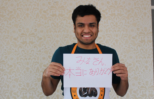 本日のカウントダウン写真(ページ上部)では、頑張って日本語を書いてくれました!