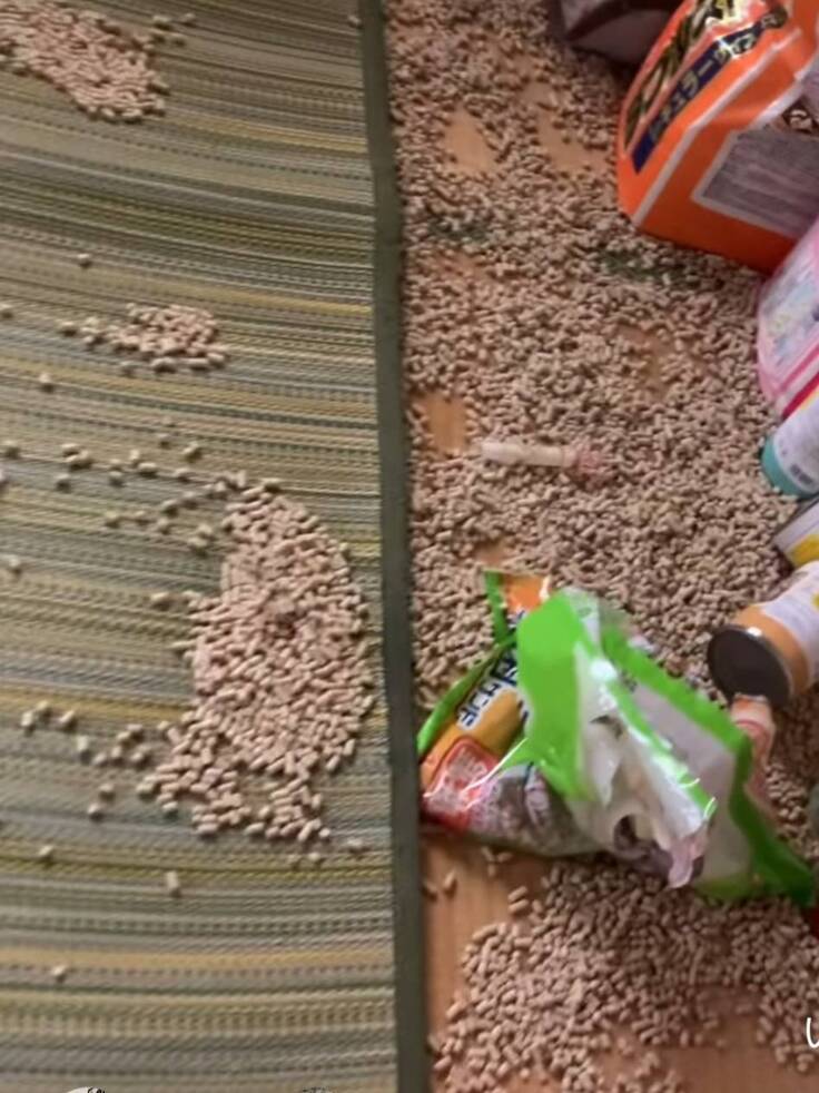 朝のお世話に行くと、砂が散らばっていて部屋がすごい状態に!