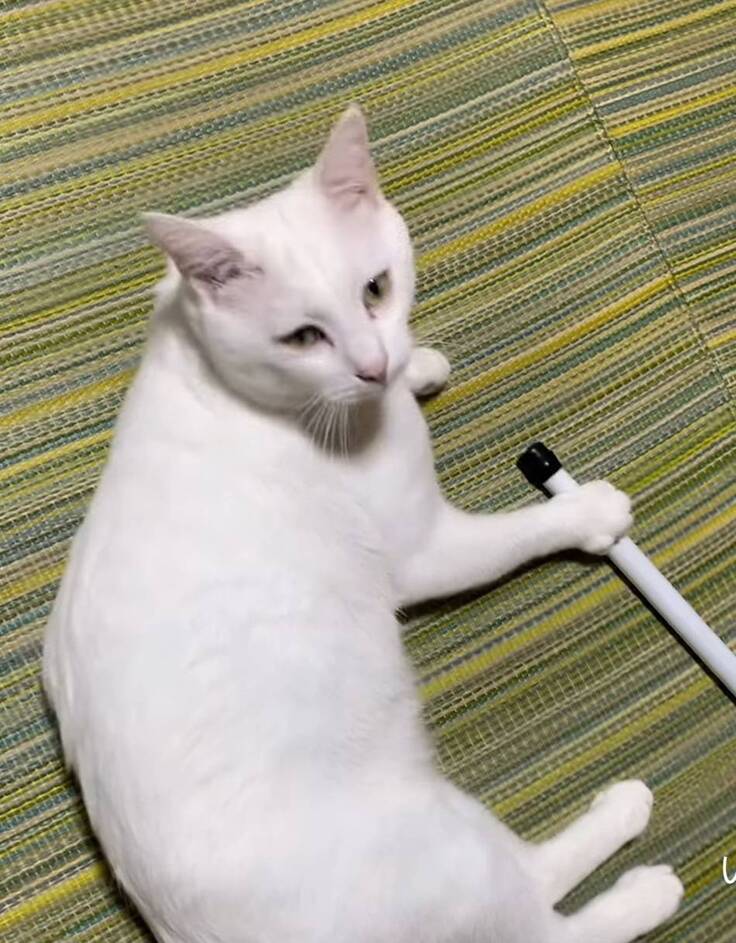 (ほうきを手に取っている大福くん🧹)