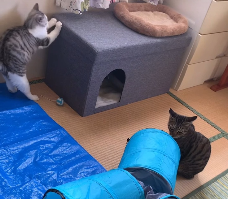 空き家の中の大福くん、三兄弟、あかりちゃんは今日も元気いっぱいでした。