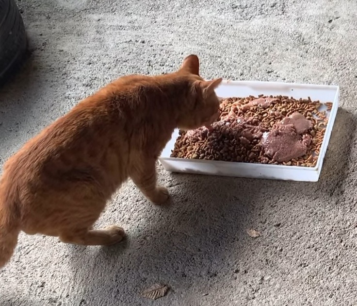 お腹を空かしている猫ちゃん達に今日はハロウィンという事でいつものご飯にちゅーるをトッピング❗️