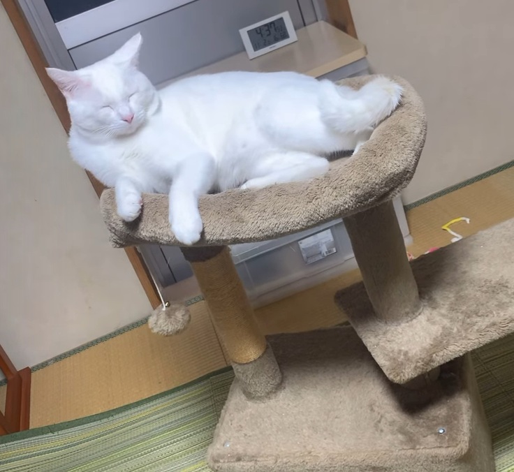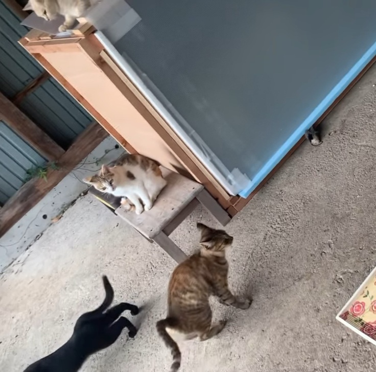 雨のせいか肌寒い朝でしたが、猫ちゃん達は屋根下の敷地内で各々のんびりしていました。