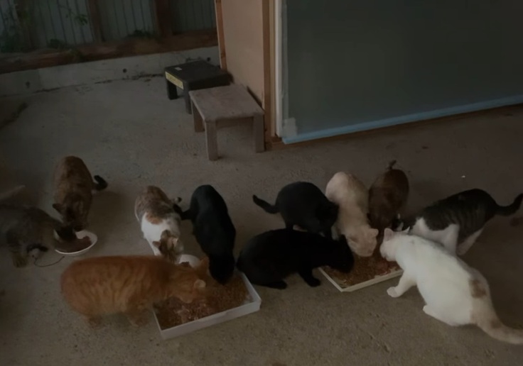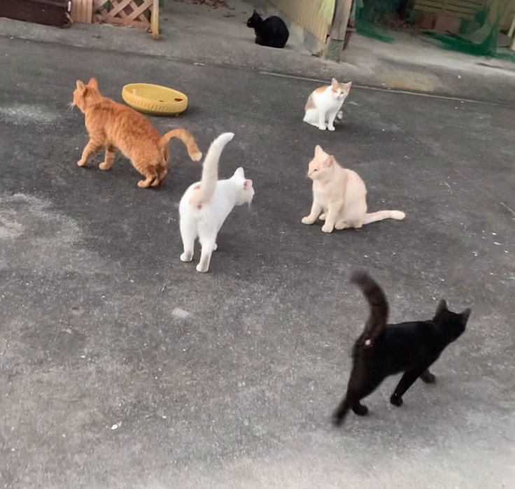 気にはなりながら、夕方のお世話へ行くとガンモくんも苺ちゃんもいつも通り来てくれて猫ちゃん達がみんな勢揃い❗️