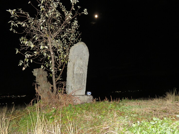 6.12.16十六夜の月と田毎観音・6.12.20月見堂屋根(新萱がほぼ積みあがってきました)