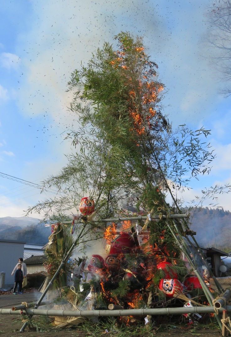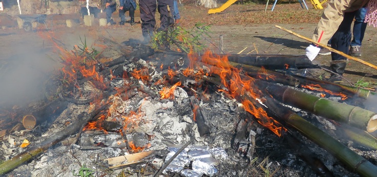 お正月が終わると姨捨を始めこの地区では「どんど焼き(しめ縄焼き)」が行われます