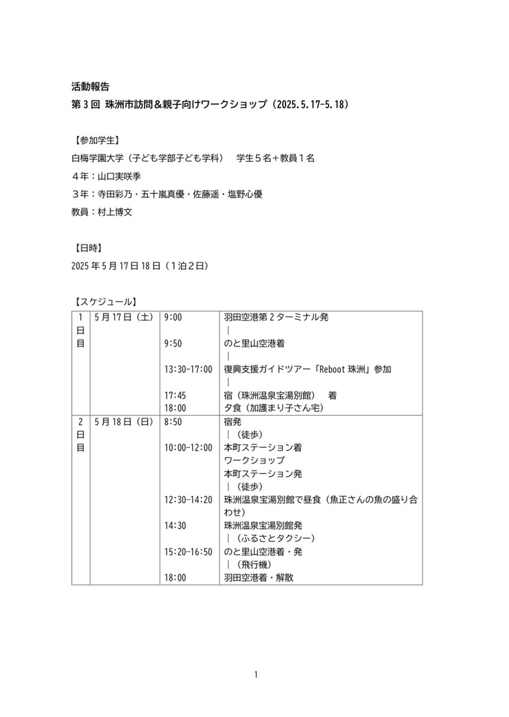 活動報告:第3回珠洲市訪問&親子向けワークショップ(2025.5.17-5.18)