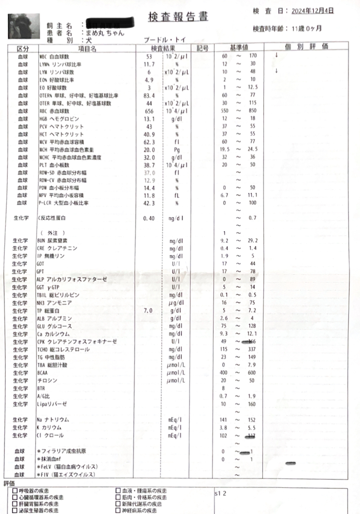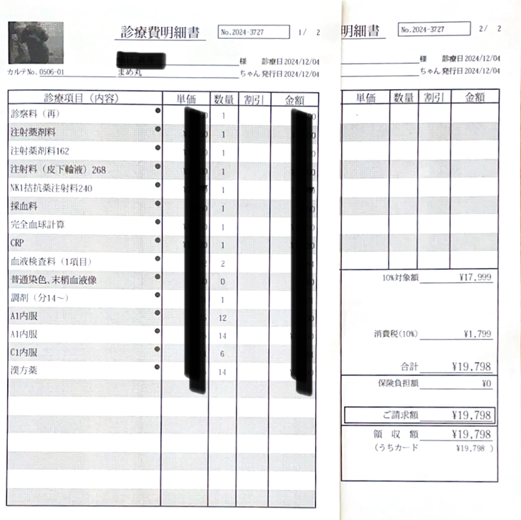 血液検査の結果は横ばい、大きな体調の崩れもないので、皮下輸液と注射をして帰ってきました。このまま、大きな副作用がないまま、過ごしていけるよう注意して生活していきます。