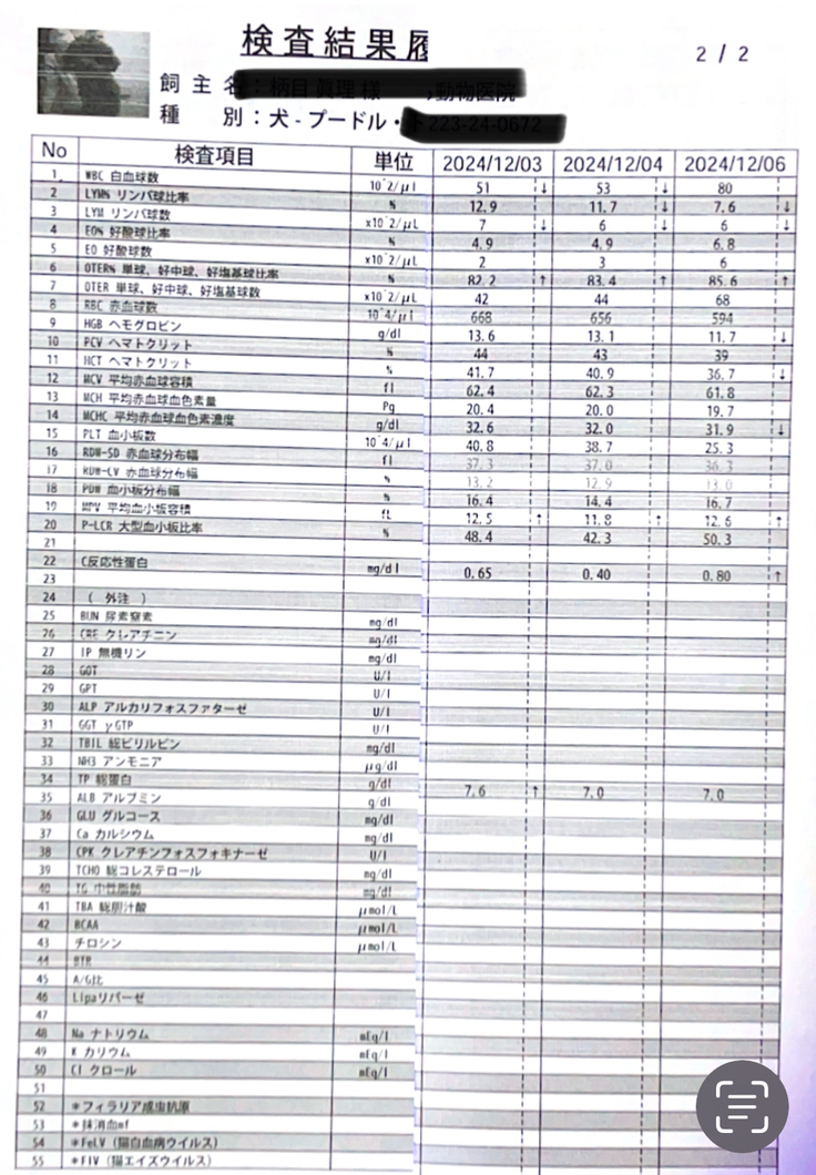 まめ丸の体調の変化は血液検査で確認し、結果によって対応が変わっていきます。
