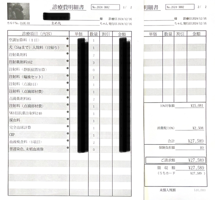 不安定で、弱った体をサポートするため1日点滴をしてきました。